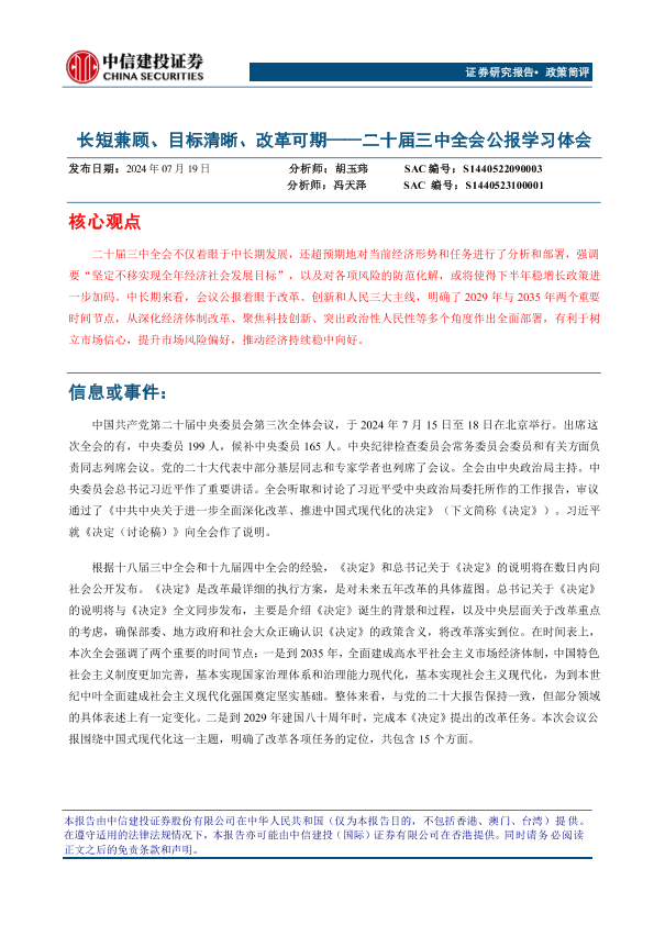 【中信建投证券】【20240719】二十届三中全会公报学习体会:长短兼顾、目标清晰、改革可期-16页
