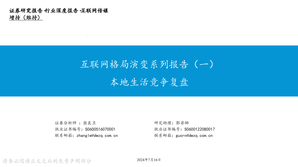 【东吴证券】【20240716】互联网传媒行业深度报告:互联网格局演变系列报告(一)+,本地生活竞争复盘-23页