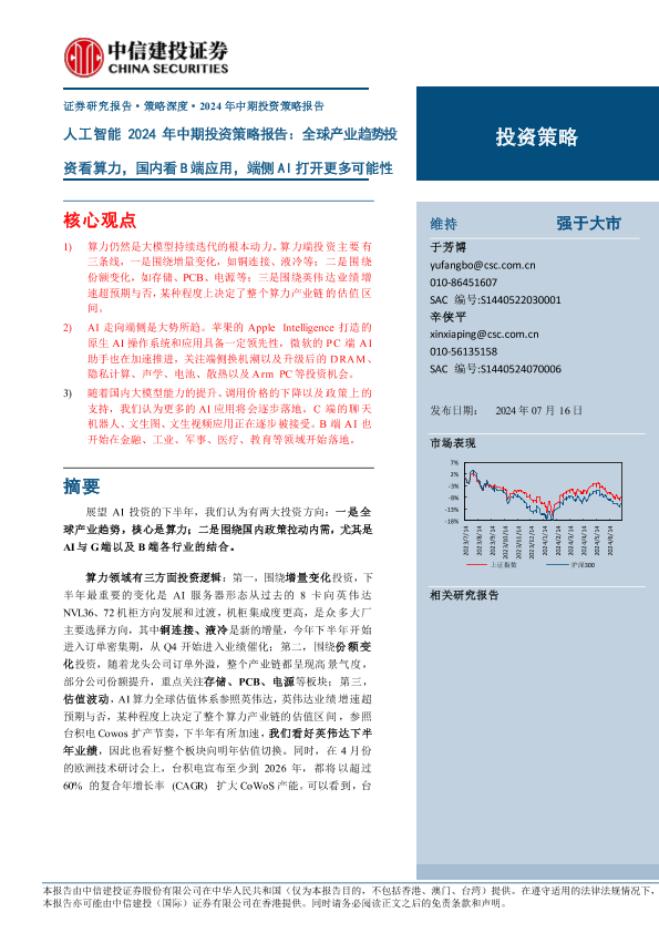 【中信建投证券】【20240716】人工智能行业2024年中期投资策略报告:全球产业趋势投资看算力,国内看B端应用,端侧AI打开更多可能性-92页