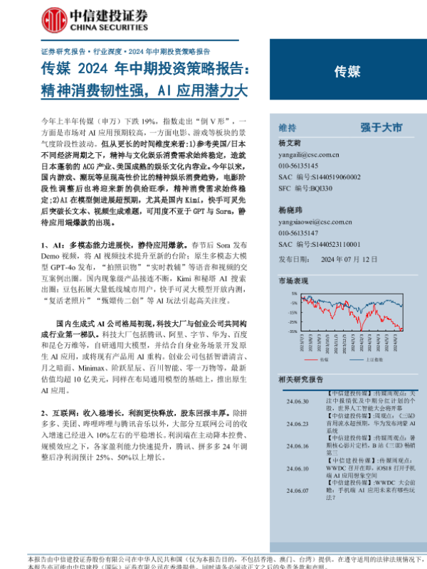 【中信建投证券】【20240712】传媒行业2024年中期投资策略报告:精神消费韧性强,AI应用潜力大-72页