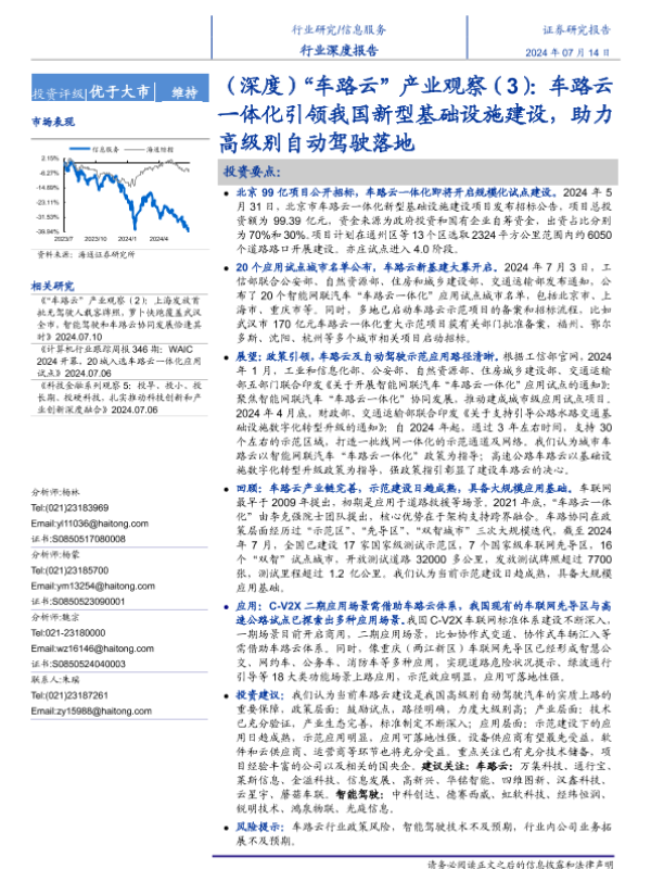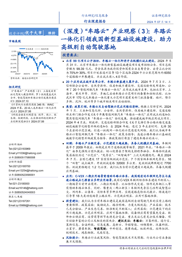 【海通证券】【20240714】信息服务行业(深度)'车路云'产业观察(3):车路云一体化引领我国新型基础设施建设,助力高级别自动驾驶落地-19页
