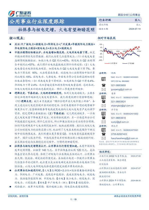 【广发证券】【20240714】公用事业行业深度跟踪:社保参与核电定增,火电有望柳暗花明-19页