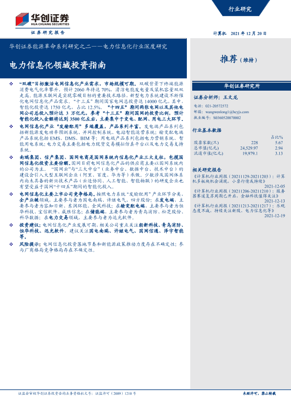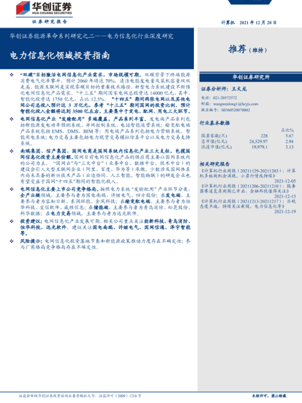 【华创证券】【20211220】电力信息化行业深度研究:能源革命系列研究之二,电力信息化领域投资指南-42页