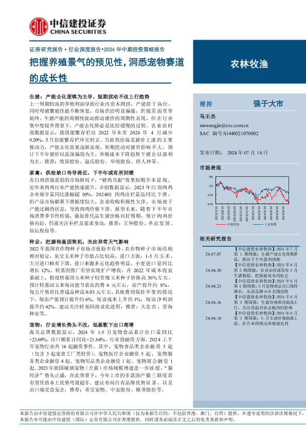 【中信建投证券】【20240714】农林牧渔行业深度报告·2024年中期投资策略报告:把握养殖景气的预见性,洞悉宠物赛道的成长性-29页