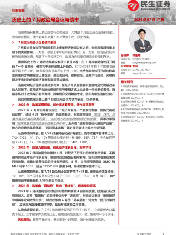 【民生证券】【20240717】利率专题:历史上的7月政治局会议与债市-20页