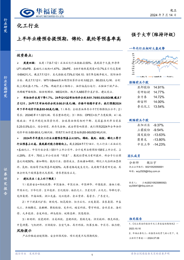 【华福证券】【20240714】化工行业:上半年业绩预告提预期,锦纶、氨纶等预喜率高-32页