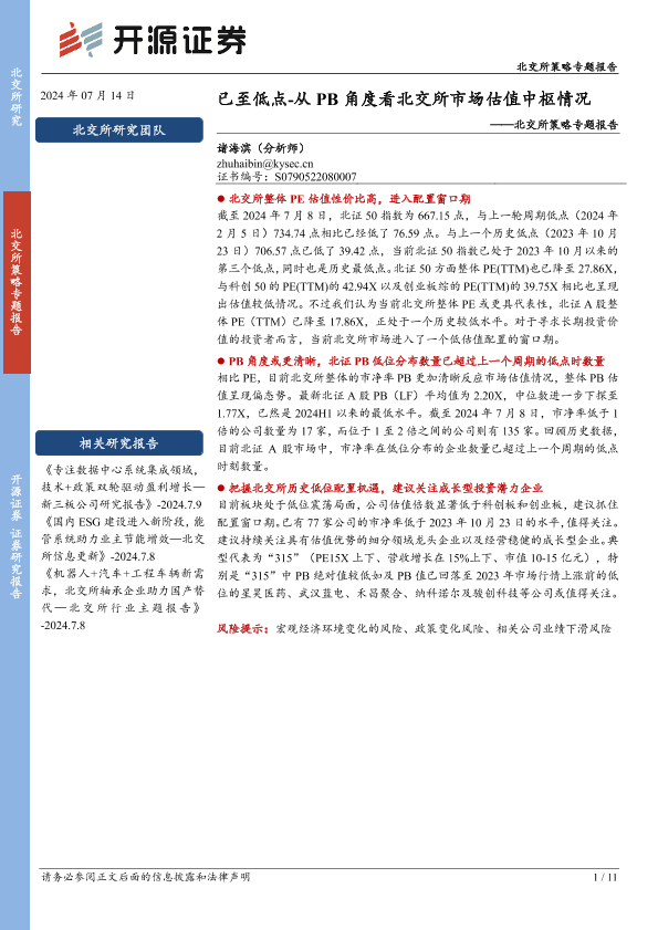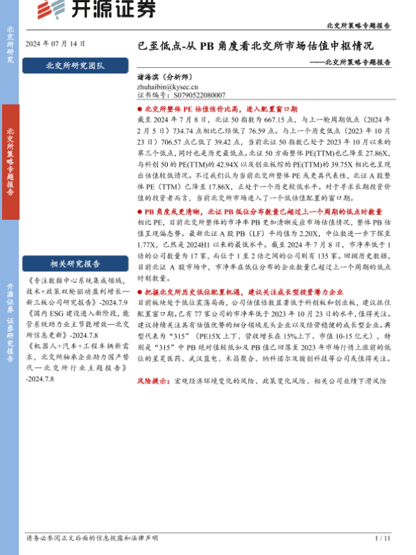 【开源证券】【20240714】北交所策略专题报告:已至低点-从PB角度看北交所市场估值中枢情况-11页