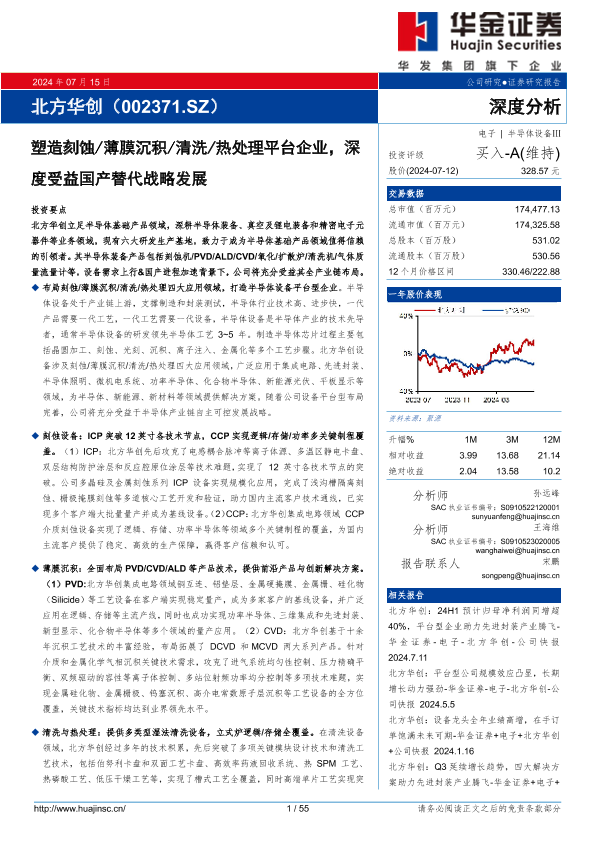 【华金证券】【20240715】北方华创(002371)塑造刻蚀/薄膜沉积/清洗/热处理平台企业,深度受益国产替代战略发展-55页