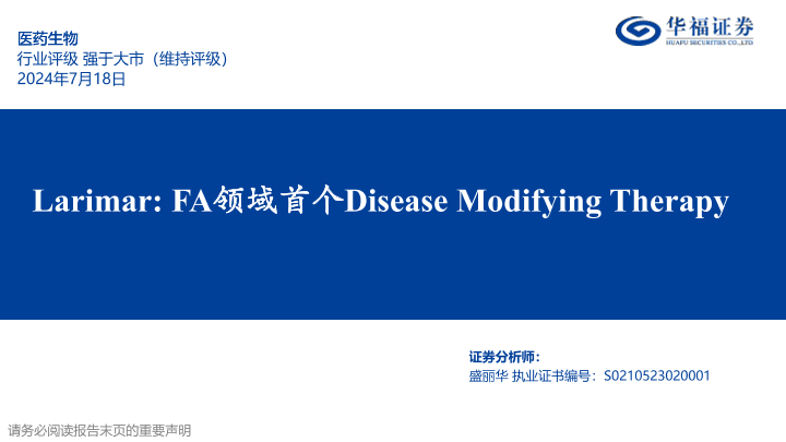 【华福证券】【20240718】医药生物行业专题报告:Larimar,FA领域首个Disease Modifying Therapy-19页