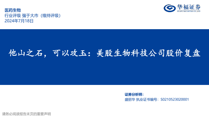 【华福证券】【20240718】医药生物行业专题报告:他山之石,可以攻玉,美股生物科技公司股价复盘-21页