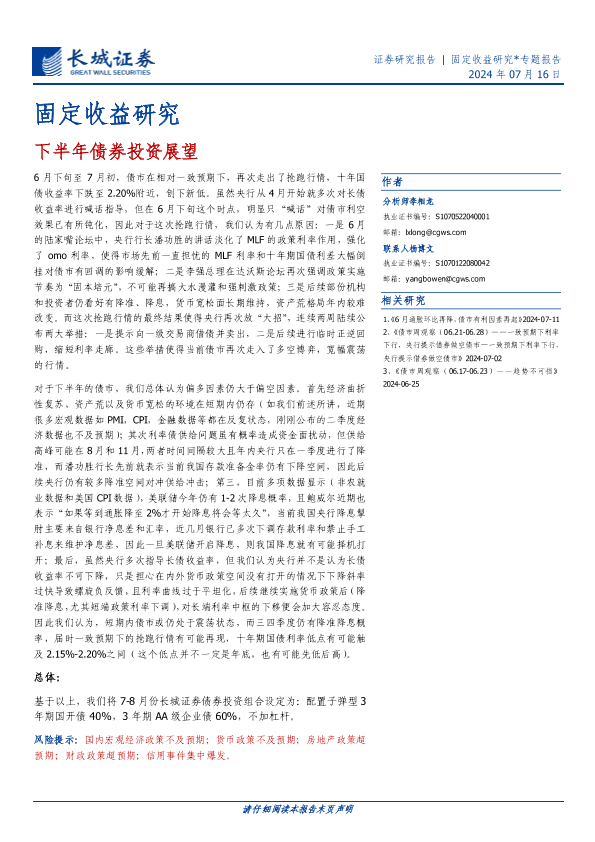 【长城证券】【20240716】固定收益研究:下半年债券投资展望-17页