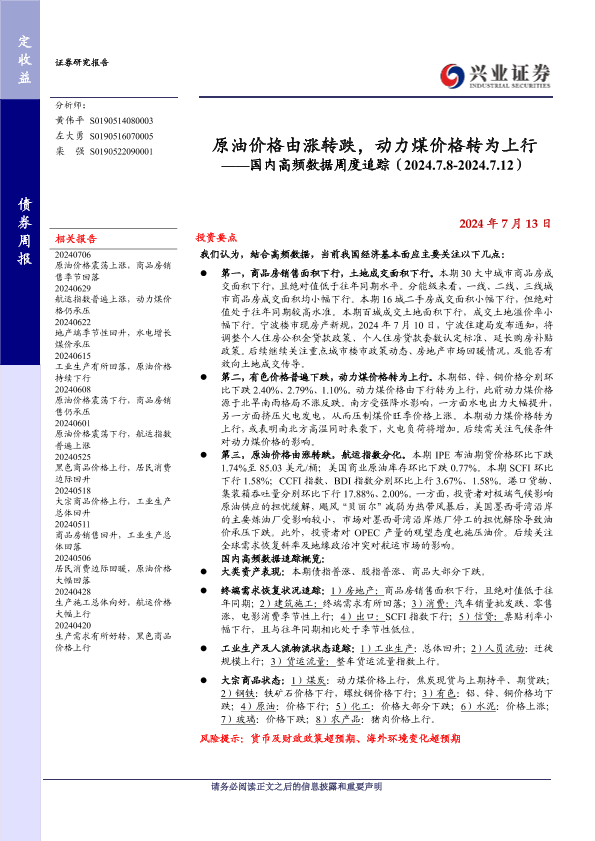 动力煤价格 工业生产 房地产市场 高频数据 原油价格
