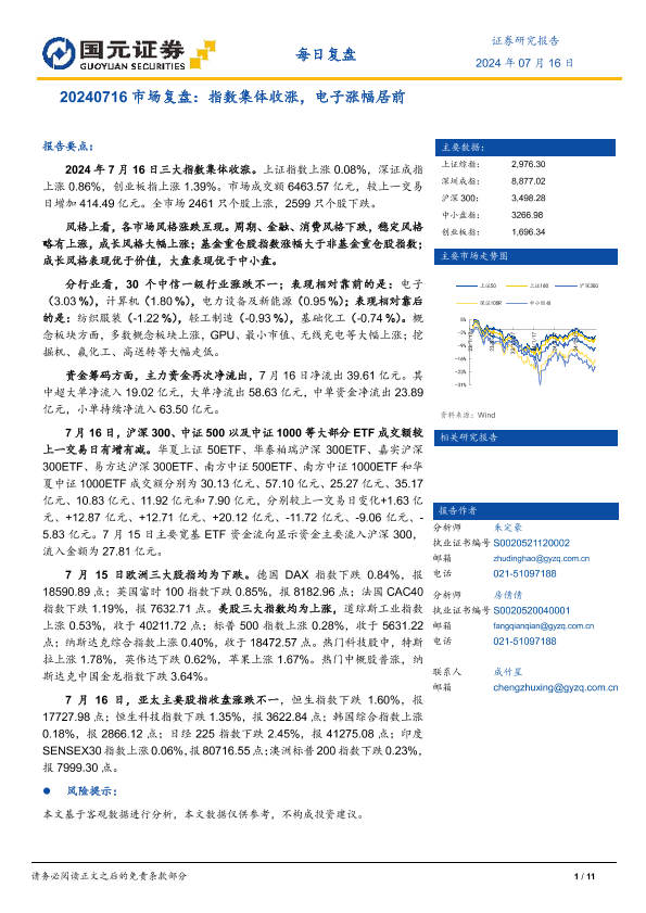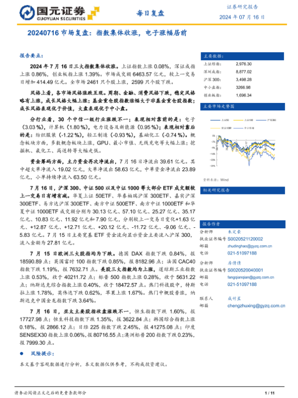 【国元证券】【20240716】20240716市场复盘:指数集体收涨,电子涨幅居前-11页