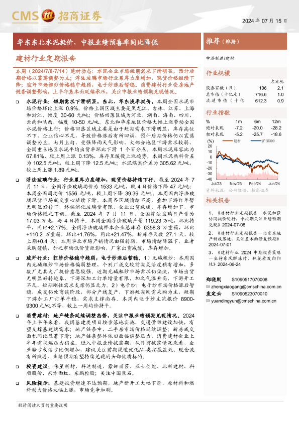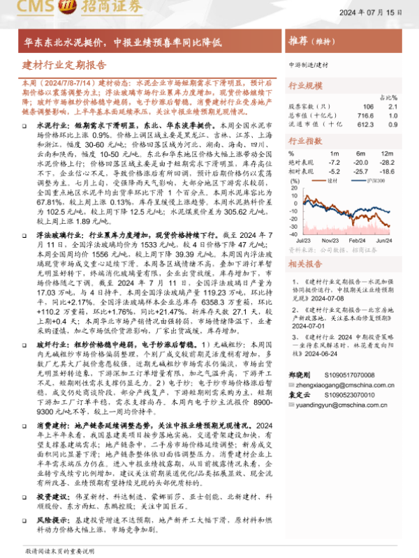 【海通证券】【20240715】建材行业定期报告:华东东北水泥挺价,中报业绩预喜率同比降低-31页
