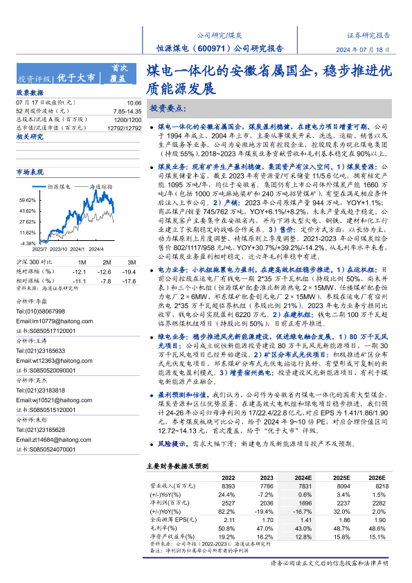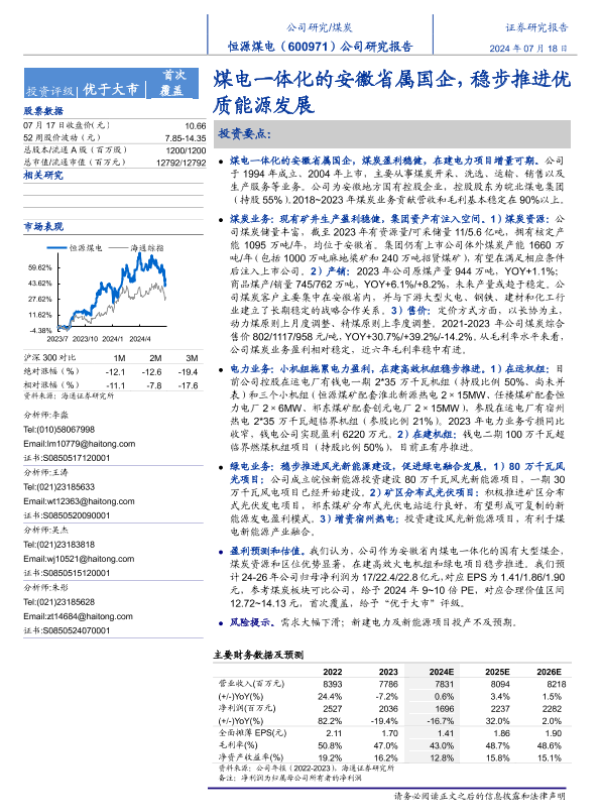 【海通证券】【20240718】恒源煤电(600971)公司研究报告:煤电一体化的安徽省属国企,稳步推进优质能源发展-21页