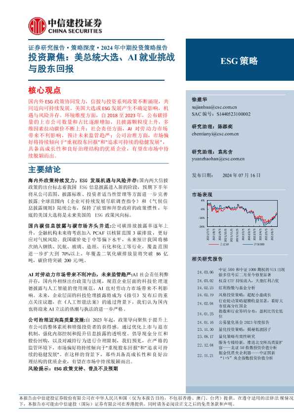 【中信建投证券】【20240716】投资聚焦:美总统大选、AI就业挑战与股东回报-22页