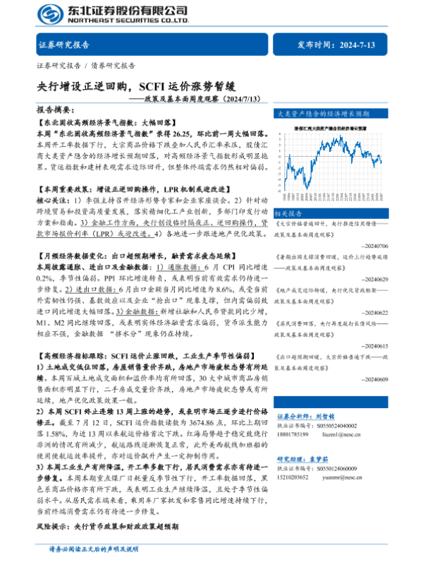 【东北证券】【20240713】政策及基本面周度观察:央行增设正逆回购,SCFI运价涨势暂缓-30页