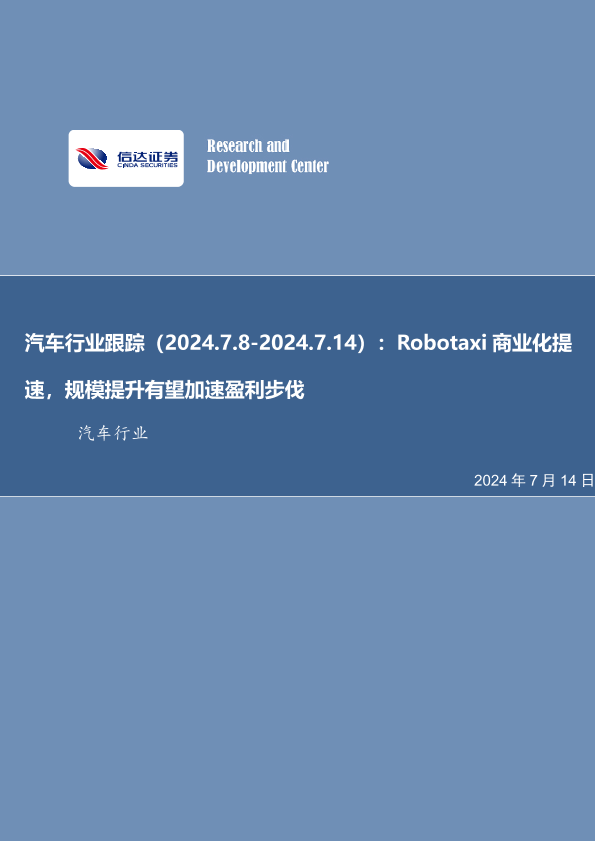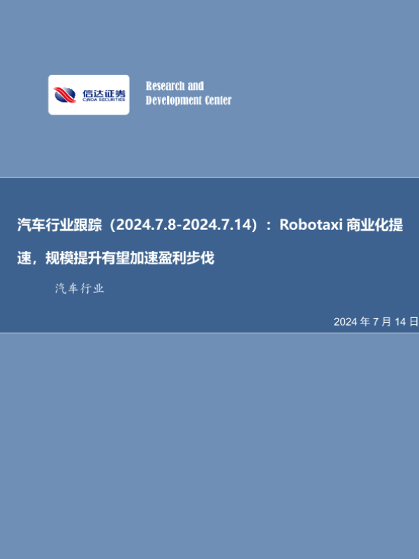 【信达证券】【20240714】汽车行业跟踪:Robotaxi商业化提速,规模提升有望加速盈利步伐-21页