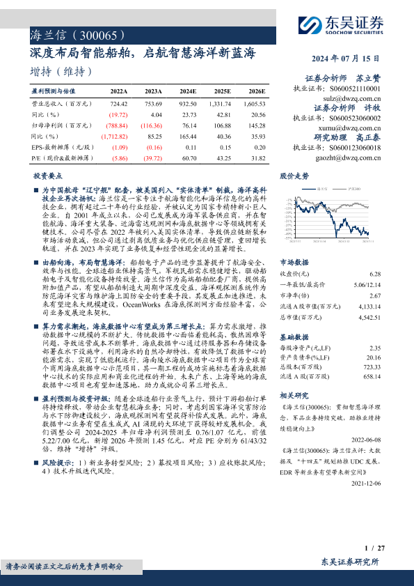 【东吴证券】【20240715】海兰信(300065)深度布局智能船舶,启航智慧海洋新蓝海-27页