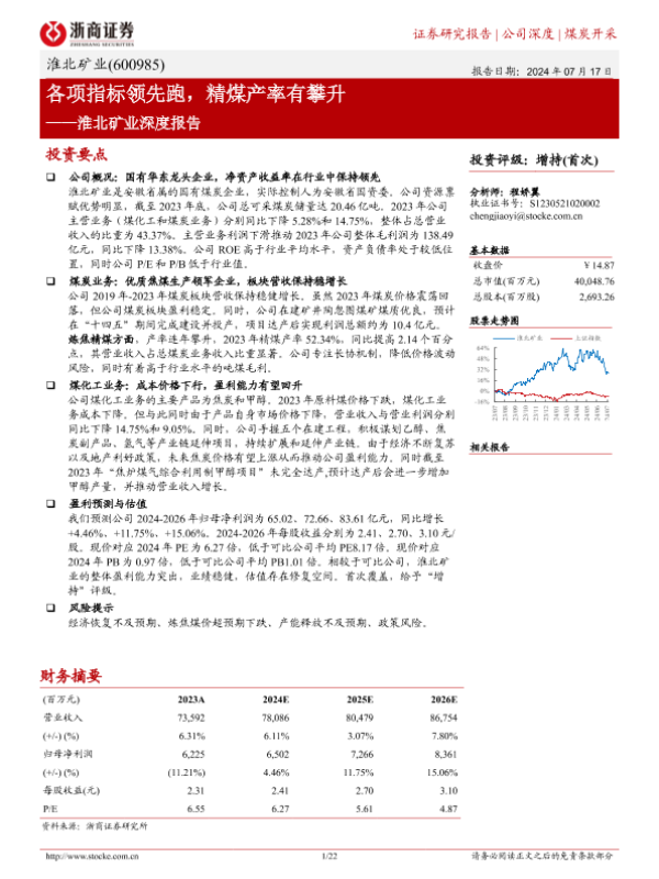 【浙商证券】【20240717】淮北矿业(600985)深度报告:各项指标领先跑,精煤产率有攀升-22页
