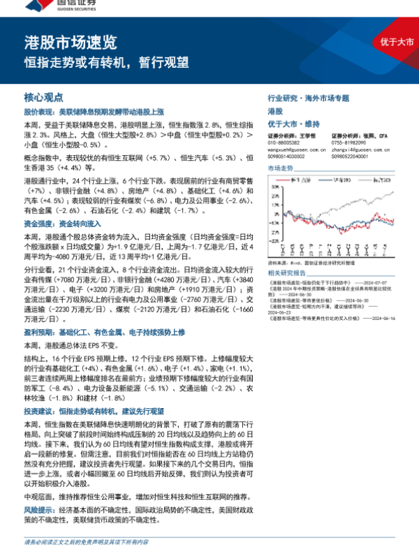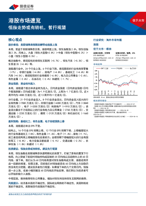 【国信证券】【20240714】港股市场速览:恒指走势或有转机,暂行观望-18页