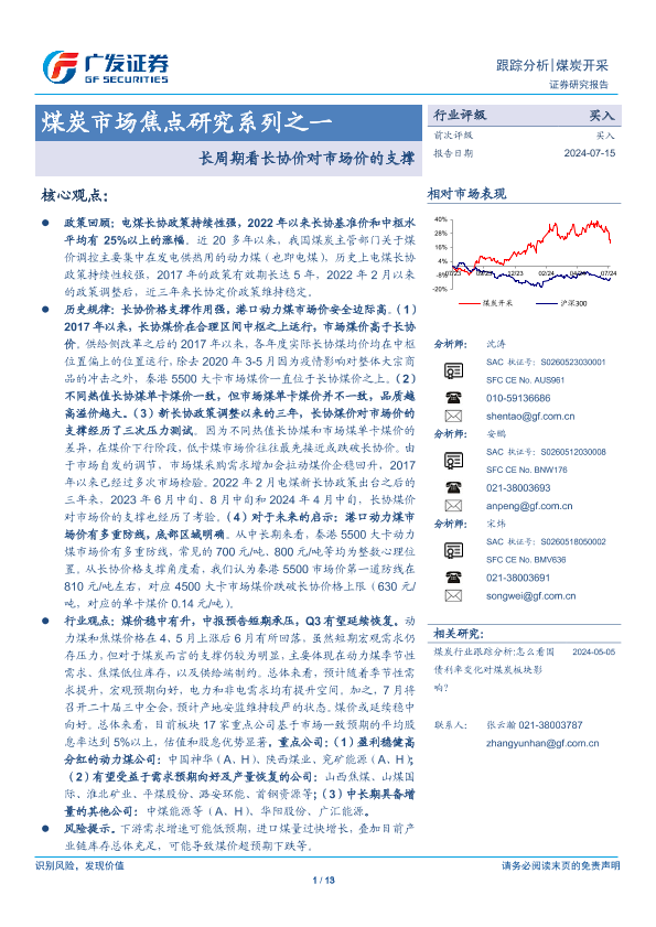 【广发证券】【20240715】煤炭开采行业煤炭市场焦点研究系列之一:长周期看长协价对市场价的支撑-13页