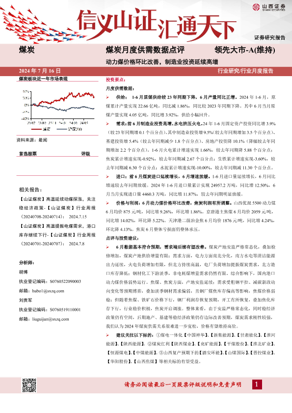 【山西证券】【20240716】煤炭行业月度供需数据点评:动力煤价格环比改善,制造业投资延续高增-10页