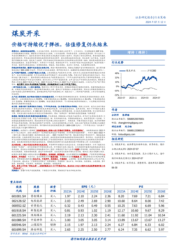 【国盛证券】【20240712】煤炭开采行业策略:价格可持续优于弹性,估值修复仍未结束-40页