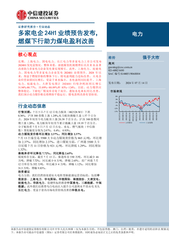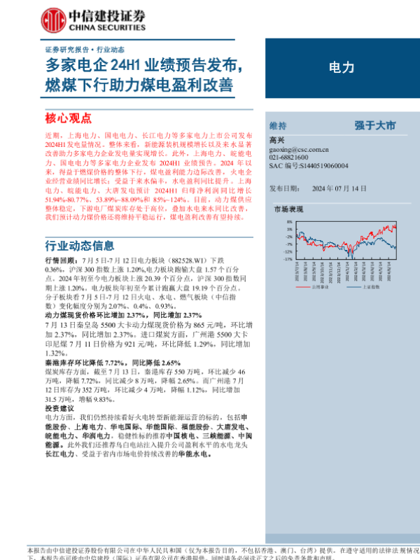 【中信建投证券】【20240714】电力行业:多家电企24H1业绩预告发布,燃煤下行助力煤电盈利改善-17页
