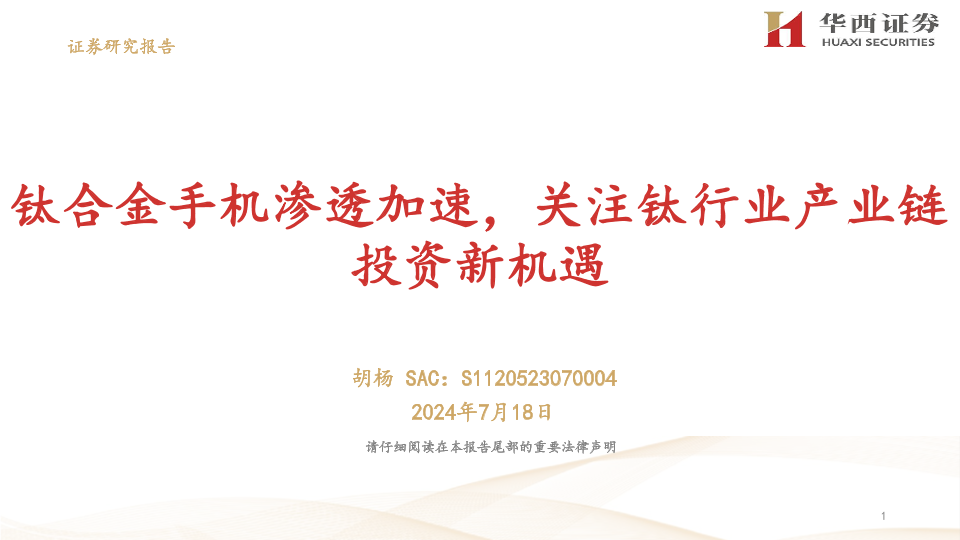 【华西证券】【20240718】电子行业:钛合金手机渗透加速,关注钛行业产业链投资新机遇-25页