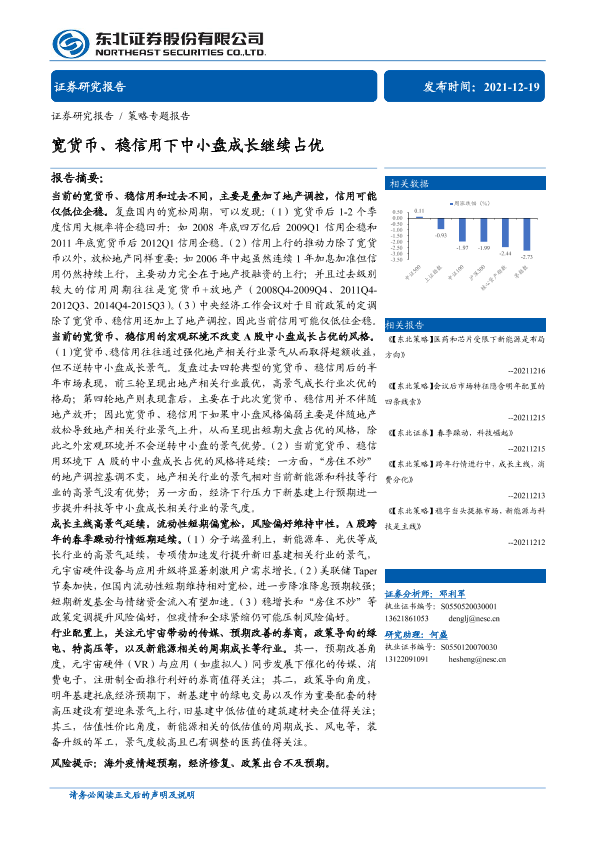 【东北证券】【20211219】策略专题报告:宽货币、稳信用下中小盘成长继续占优-29页