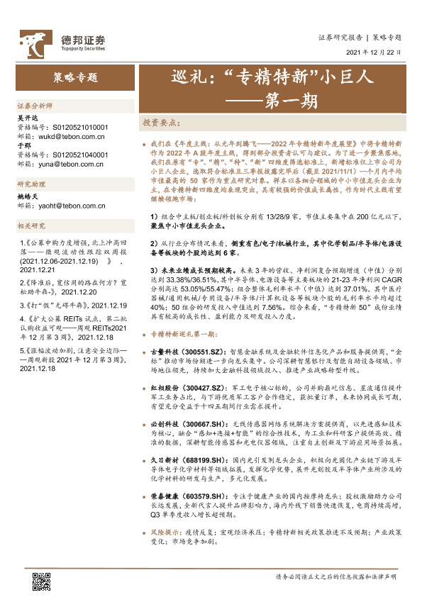 【德邦证券】【20211222】策略专题第一期:巡礼,“专精特新”小巨人-21页