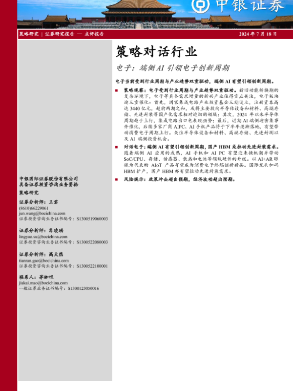 【中银证券】【20240718】策略对话行业-电子:端侧AI引领电子创新周期-16页