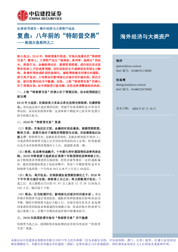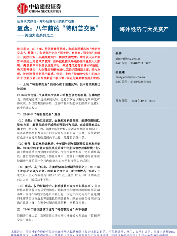 【中信建投证券】【20240718】美国大选系列之二-复盘:八年前的“特朗普交易”-17页