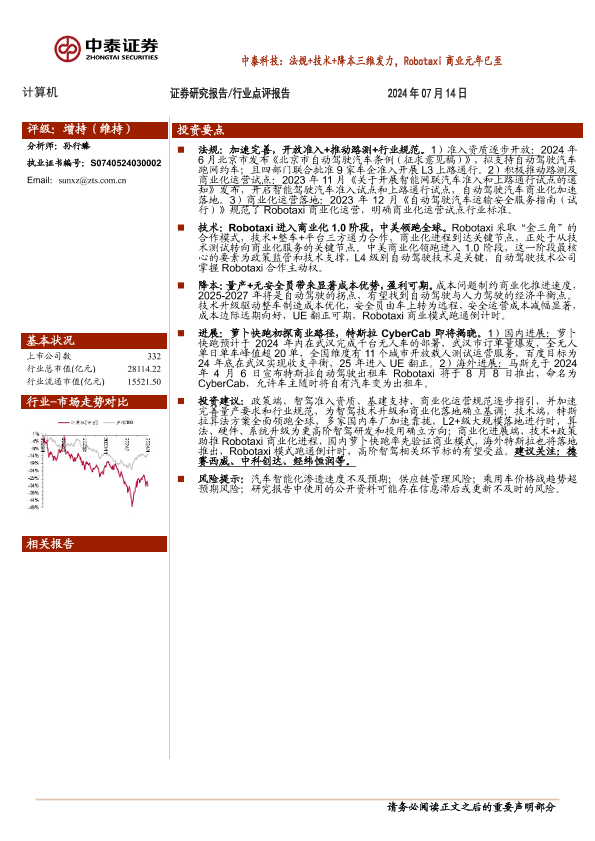 【中泰证券】【20240714】计算机行业中泰科技:法规+技术+降本三维发力,Robotaxi商业元年已至-15页