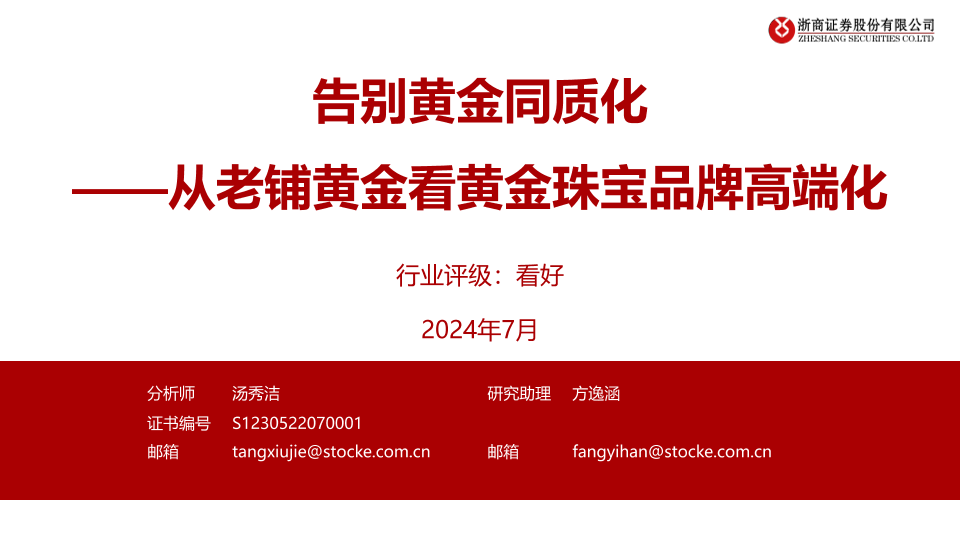 【浙商证券】【20240716】贵金属行业:从老铺黄金看黄金珠宝品牌高端化,告别黄金同质化-28页
