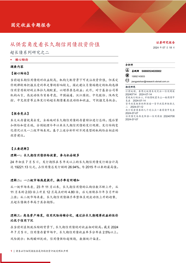 【西部证券】【20240718】超长债系列研究之二:从供需角度看长久期信用债投资价值-13页