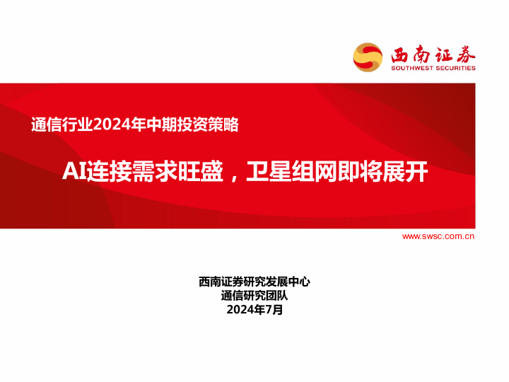 【西南证券】【20240715】通信行业2024年中期投资策略:AI连接需求旺盛,卫星组网即将展开-65页