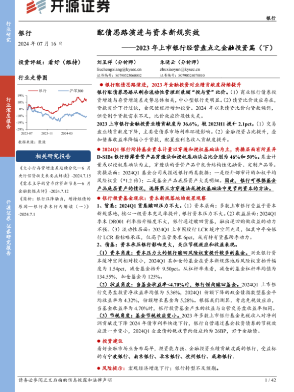 【开源证券】【20240716】银行业2023年上市银行经营盘点之金融投资篇(下):配债思路演进与资本新规实效-42页