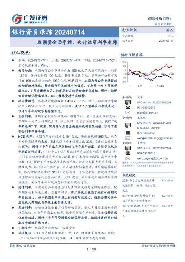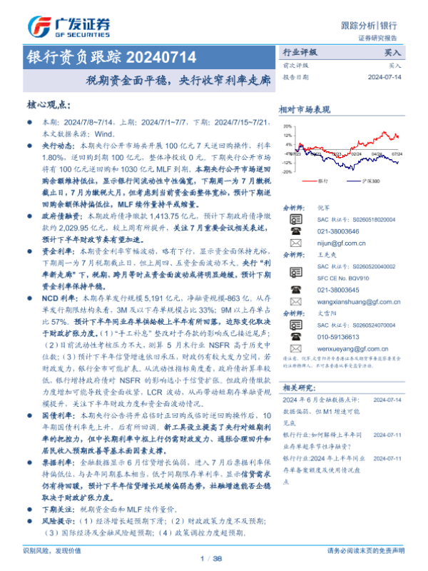 【广发证券】【20240714】银行业资负跟踪:税期资金面平稳,央行收窄利率走廊-38页