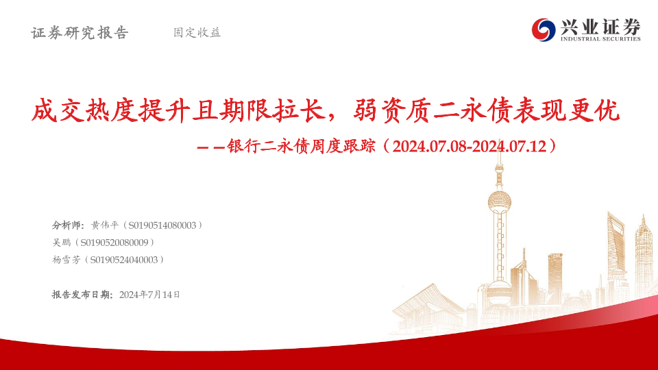【兴业证券】【20240714】银行二永债跟踪:成交热度提升且期限拉长,弱资质二永债表现更优-40页