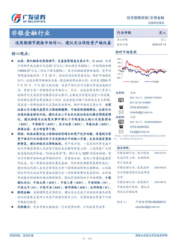 【广发证券】【20240714】非银金融行业:逆周期调节提振市场信心,建议关注保险资产端改善-11页