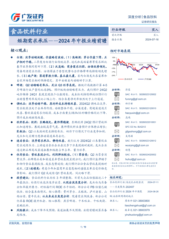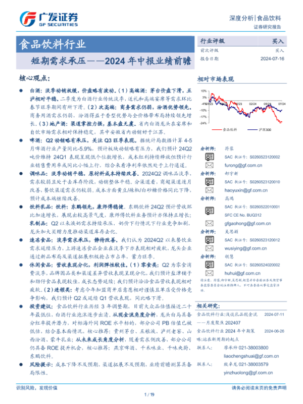【广发证券】【20240716】食品饮料行业2024年中报业绩前瞻:短期需求承压-19页