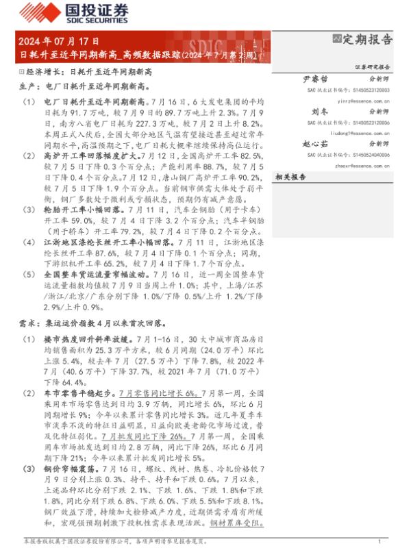 【国投证券】【20240717】高频数据跟踪:日耗升至近年同期新高-15页