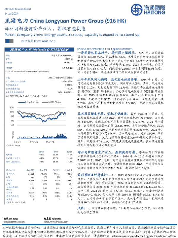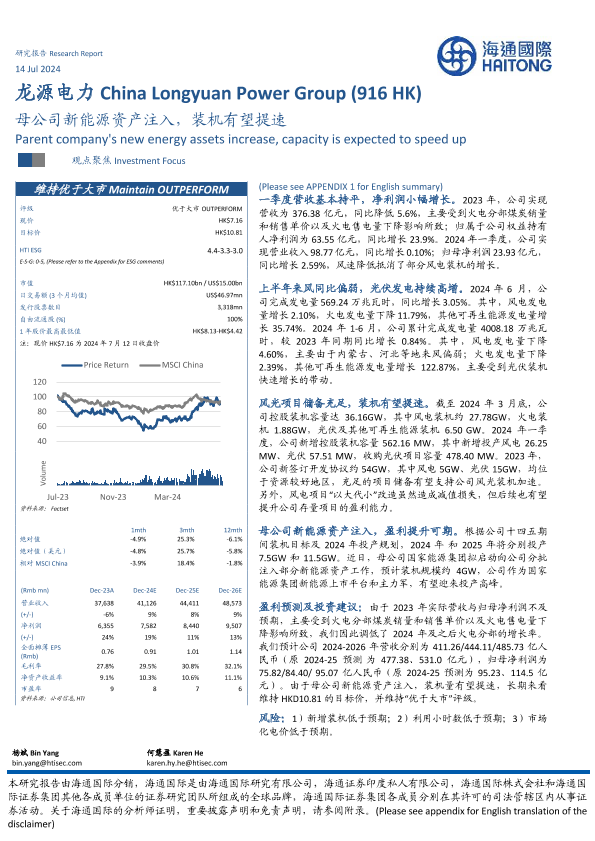 【海通国际】【20240714】龙源电力(0916.HK)母公司新能源资产注入,装机有望提速-12页