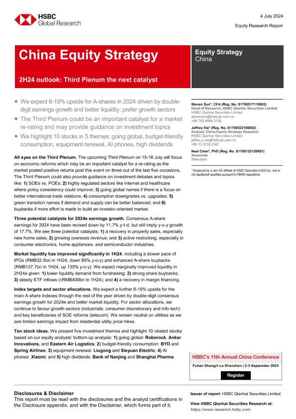 【HSBC Qianhai Securities Limited】【20240704】HSBC-China Equity Strategy-2H24 outlook Third Plenum the next catalyst-45页
