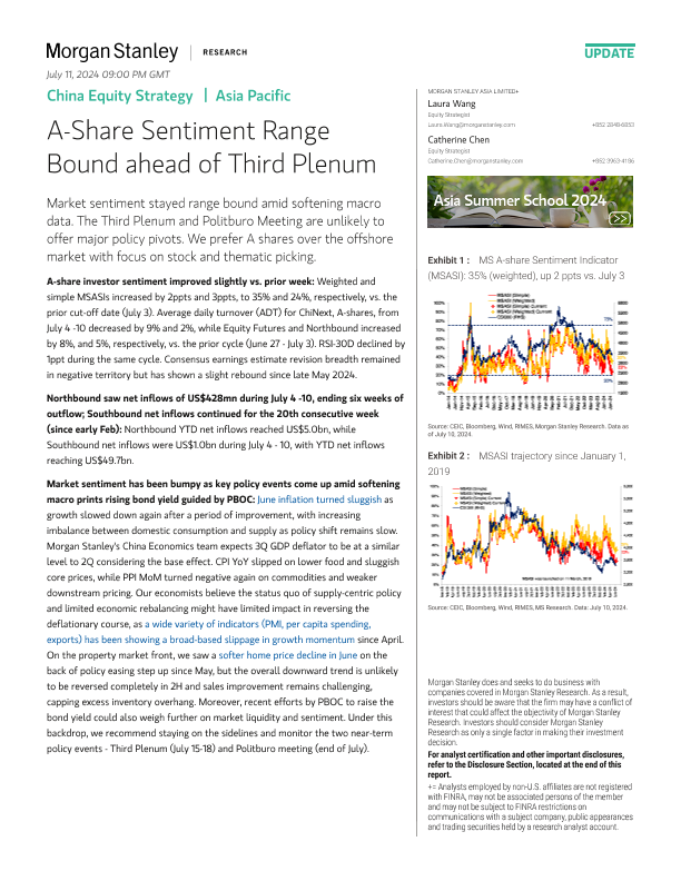 【Morgan Stanley】【20240710】中国股市策略 | A股情绪在第三次全体会议前波动-11页