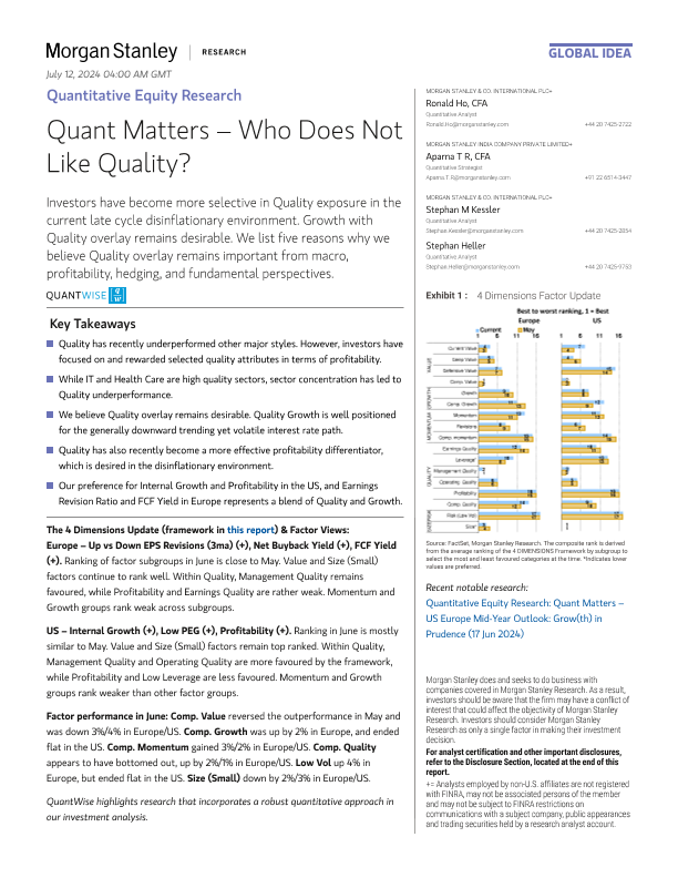 【Morgan Stanley】【20240628】Quant Matters – Who Does Not Like Quality?-58页