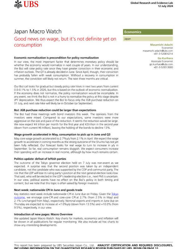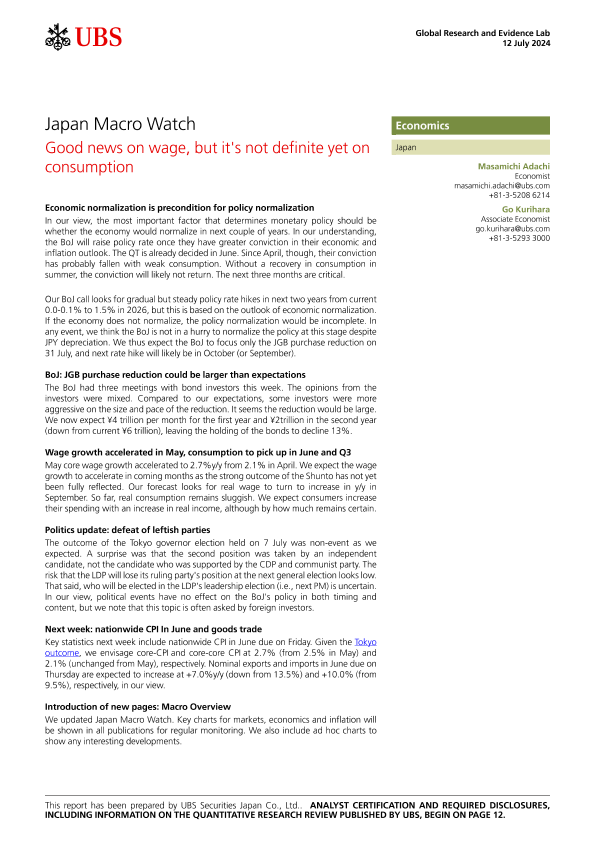 【UBS Securities Japan Co.&Ltd.】【20240712】Japan Macro Watch Good news on wage, but it's not definite yet on consumption-16页
