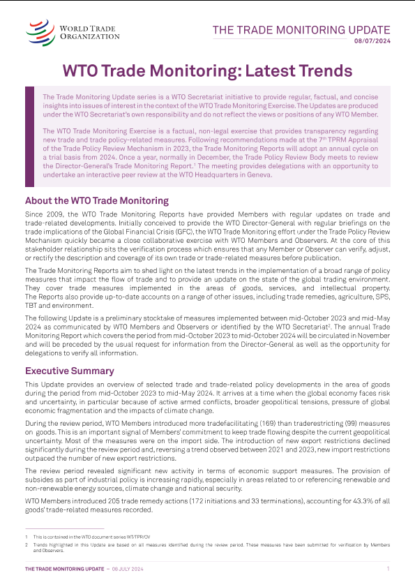 【世界贸易组织(WTO)】【20240708】2024年全球贸易监测快报-8页